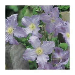 ‘Blue Angela’ comprises of a medium-sized, deciduous variety of clematis, that will bear large pale-blue blooms. Each flower consists of an arrangement of four pale-blue petals, adorned by mildly crinkled borders, that encircle light yellow stamens. This variety will happily trail up a trellis, wall, fence, or pergola. To create a distinct interspersion of colours, this clematis can be combined with other climbing plants, such as roses or jasmine. Between June and September, Blue Angel will display its beautiful blooms, where it will flourish in any aspect; thriving in both full sun and partial shade, either on an exposed or sheltered site.