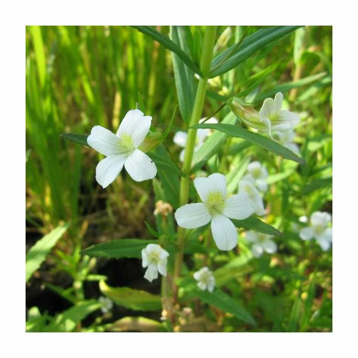 Gratiola Officinalis is a marginal perennial which is excellent for forming a clumped cover around pond margins and concealing the edges of pond liners. The leaves grow on opposite sides of rounded stems with masses of dainty white flowers atop short stalks, which contrast beautifully with its bright green foliage. This moisture-loving plant will beautify your water garden and complement the foliage of your other plants.